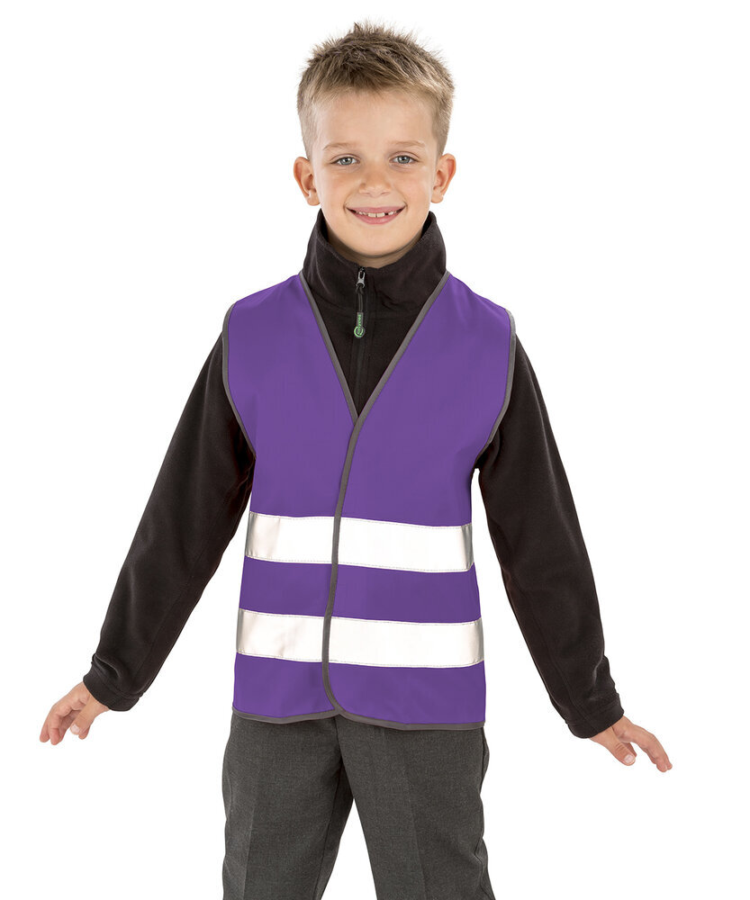 Generous in size allowing to be worn as an over garment. Black Polyester bound edges. 50mm sewn on safety tapes. Note: these garments should be worn fastened and kept clean to maintain effectiveness. Conforms to EN1150 – 89/686/EEC directive Size - Age S - 4/6 , M - 7/9 , L - 10/12 Chest to fit 22.5/24”, 25/27.5”, 29/31”