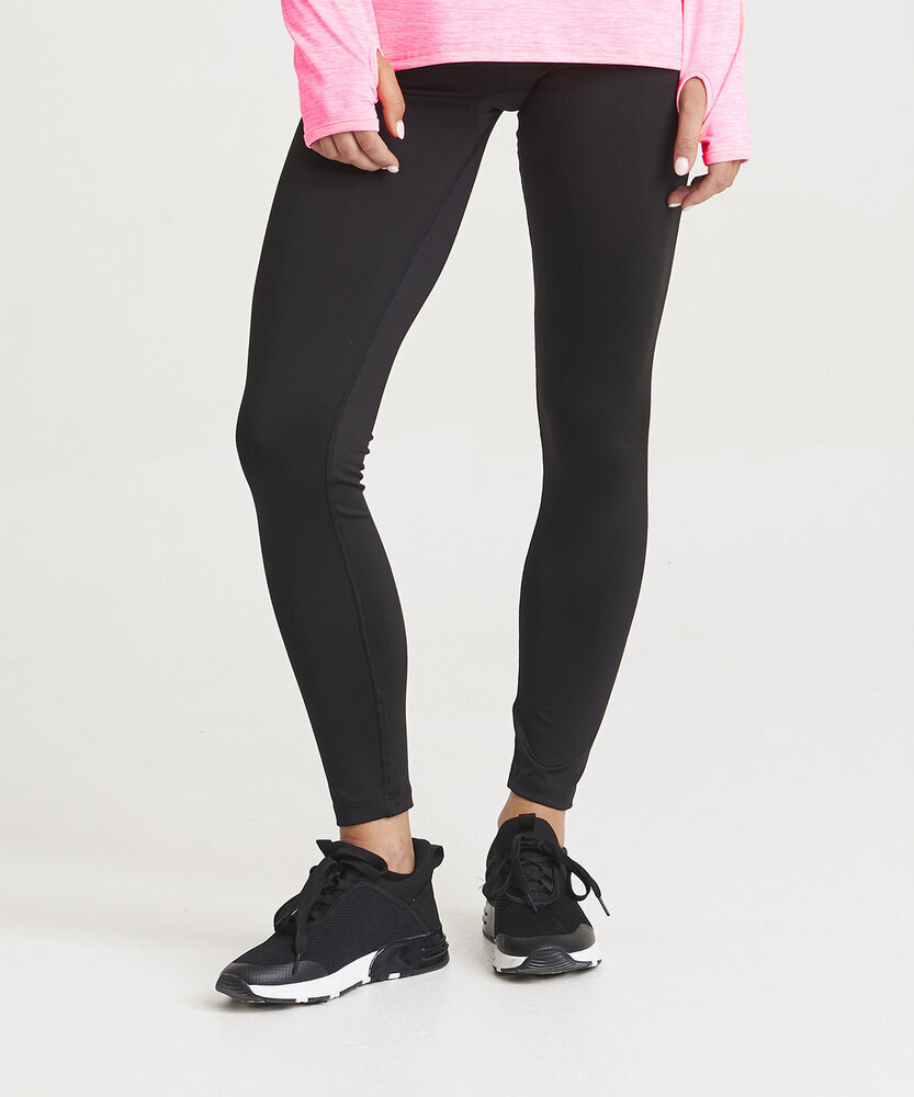 Bold solid colour sports leggings made from polyester/elastane blended fabric that is quick-dry and wicking.