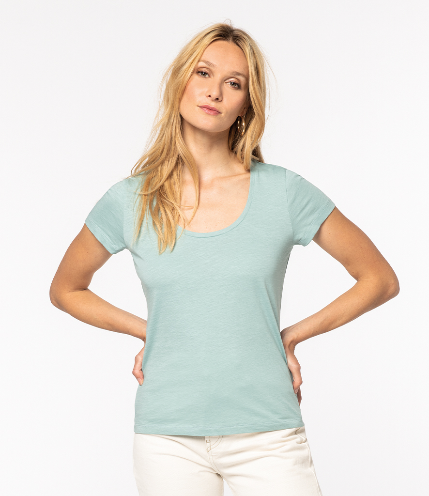 100% organic ringspun combed cotton. Slub-look jersey fabric. Regular fit. Raw edge wide neckline. Taped neck. Side seams. Twin needle sleeves and hem. Tag free. Garment dyed after assembly, colours may vary slightly. Special Order items are non-stock Items ordered from the supplier. These items are non-returnable, and lead times may vary.